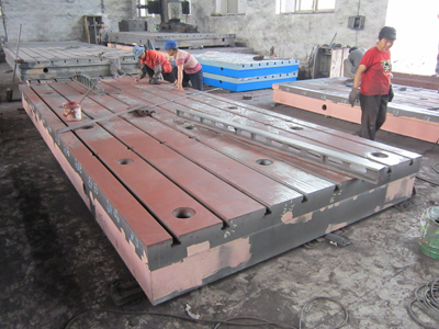 我公司專業(yè)生產(chǎn)加工量具及鑄件:電機(jī)試驗(yàn)臺(tái)、圓平臺(tái)、落地鏜床工作臺(tái)、火工平臺(tái)、檢驗(yàn)平臺(tái)、劃線平臺(tái)、鉚焊平臺(tái)、裝配平臺(tái)、動(dòng)力機(jī)械震動(dòng)試驗(yàn)臺(tái)(又稱槽鐵或地梁、地軌)、立車工作臺(tái)、龍門銑刨床工作臺(tái)、機(jī)床床身鑄件、立柱、橫梁 機(jī)床滑座,模具墊板、鑄鐵底座和鼓風(fēng)機(jī)殼及配件、汽車模具 壓重體鑄件。我公司專業(yè)承接:HT200、HT250、HT300(40T/件以下的)高牌號(hào)大型鑄件與球墨鑄件均采用樹脂砂造型工藝,所生產(chǎn)的鑄件具有外觀光潔、加工余量小等特點(diǎn)。